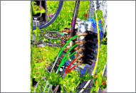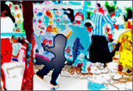 Acrylfarben, Ölfarben und Wasserfarben kombiniere ich mit beliebigen Collage-Materialien und geeigneten technischen Methoden.